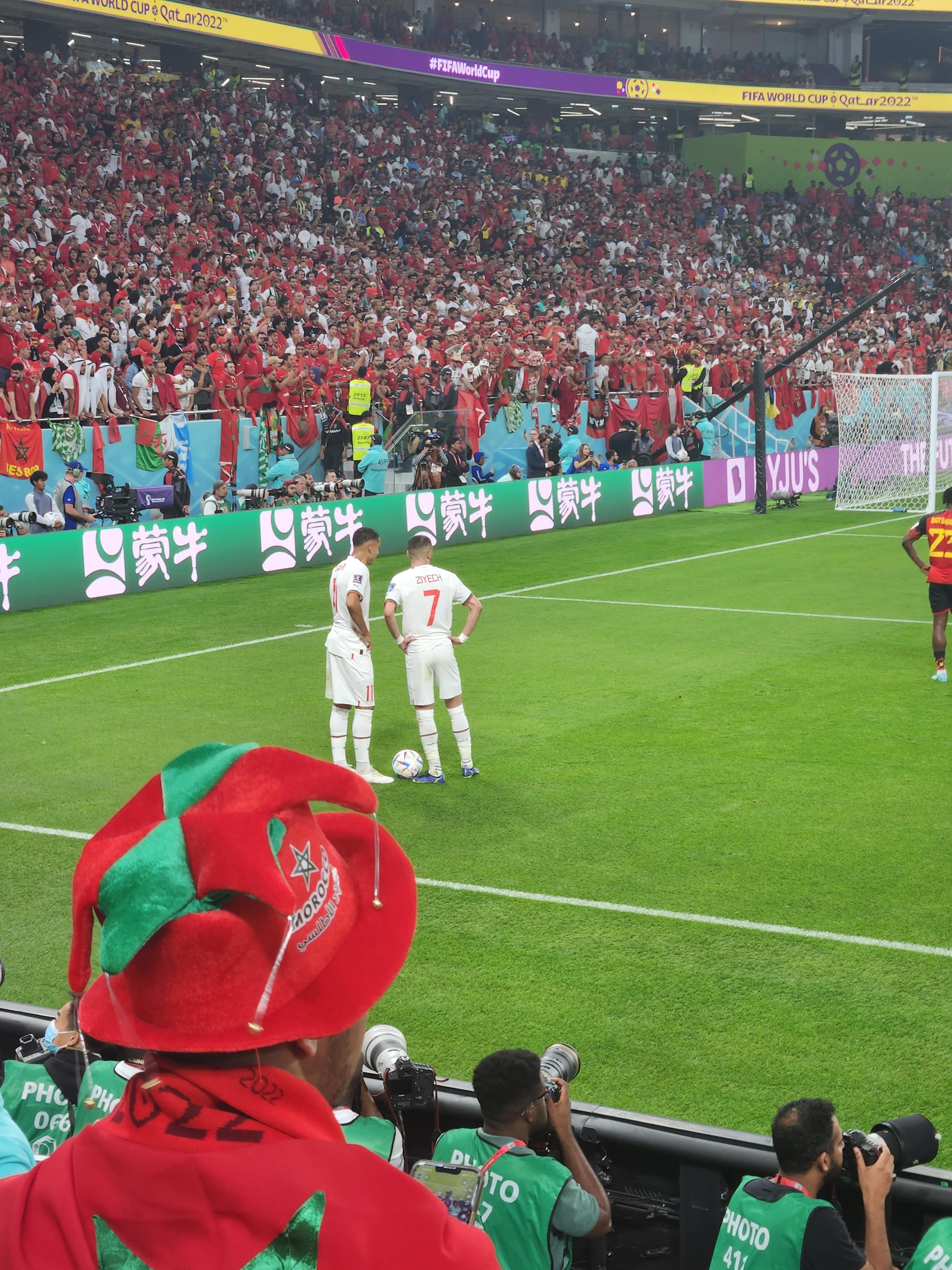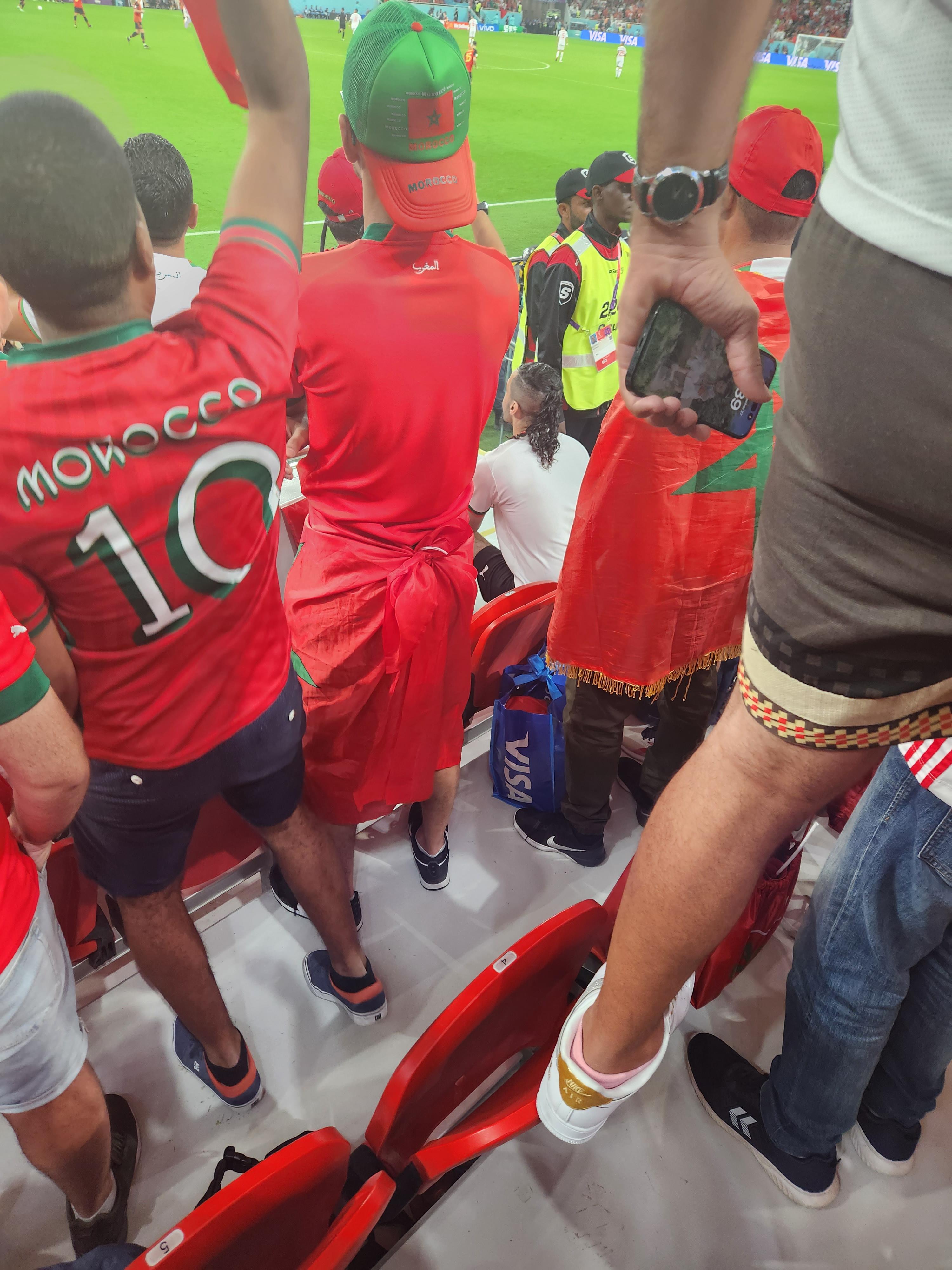 모로코 팬들은 벨기에가 공을 잡으면 온갖 괴성을 냈다. 휘파람, 호루라기, 야유, 새소리를 쏟아내다가 모로코가 역습을 나가면 쑥! 쑥! 쑥! 외쳤다.