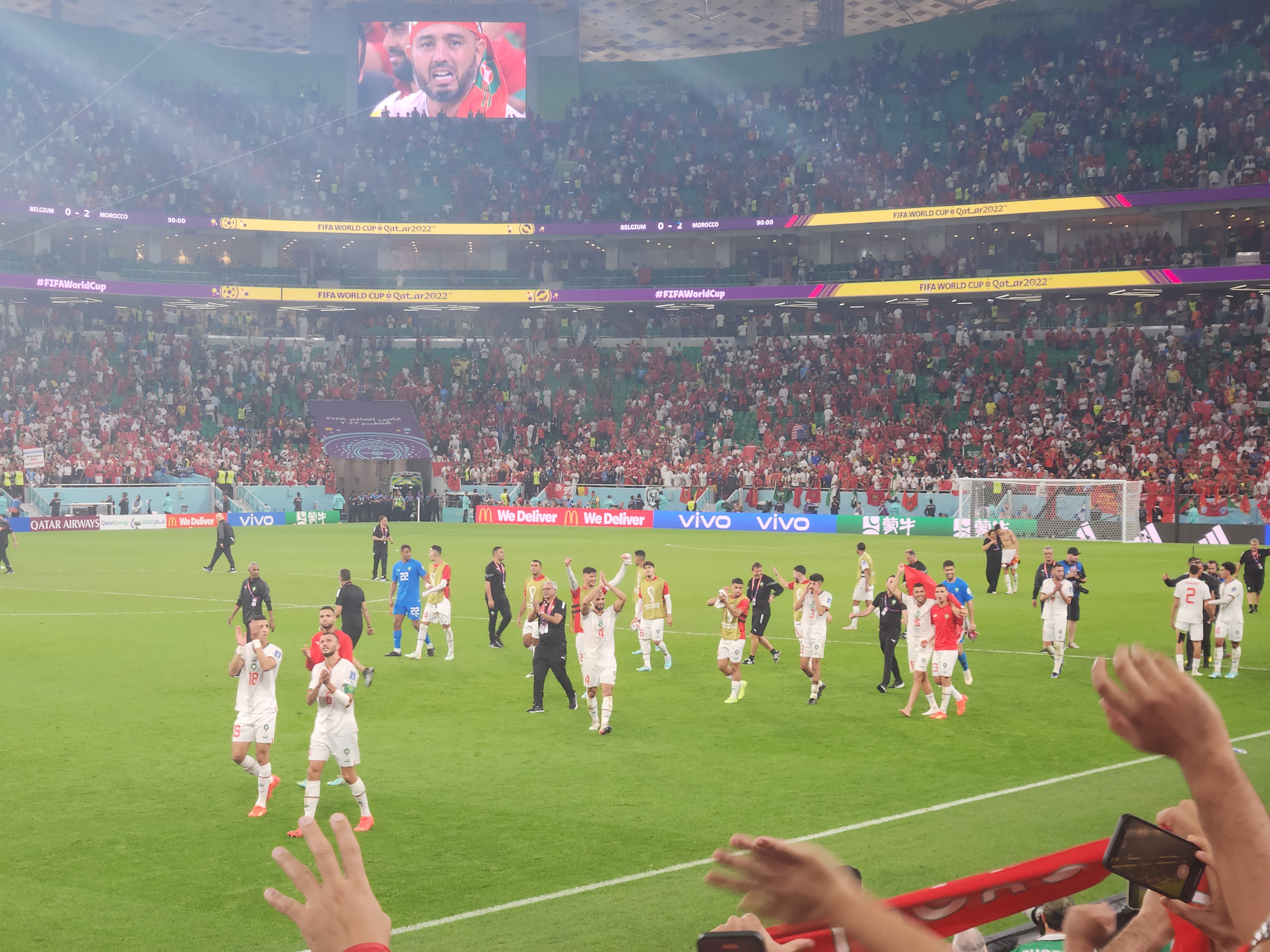 경기 결과 2대0 모로코의 승리. 우리나라 팬들도 이 정도로 열정 있게 응원하면 4강 신화를 이룰 수 있지 않을까 싶었다.